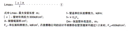 褡補(bǔ)償器(包括轉(zhuǎn)角處自然補(bǔ)償器)至固定點(diǎn)之間的距離不得_管道的_安裝長度Lmax,管道_安裝長度的定義是固定點(diǎn)至自由端(補(bǔ)償器)的長度,在此長度下產(chǎn)生的摩擦力不得_管道許用應(yīng)力下相應(yīng)的彈性力。