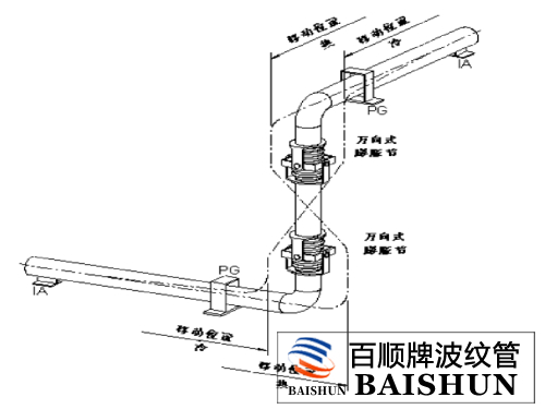 6、管系安裝完畢后,應盡快拆除波紋補償器上用作安裝運輸?shù)狞S色輔助定位構(gòu)件及緊固件,并按設計要求將限位裝置調(diào)到規(guī)定位置,使管系在環(huán)境條件下有充分的補償能力。